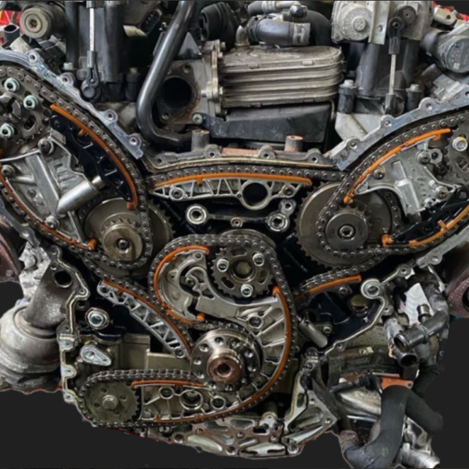 - Steuerkette(n), Kettenspanner, Gleitschienen, Stirnräder, Bolzen und Schrauben